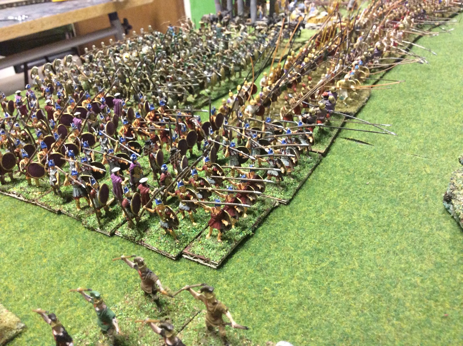 Half off Seleucid army including the 11,000 Pike in the centre guarded on their wings by Thoraki, Antiochus is in Cavalry at far end of left wing.